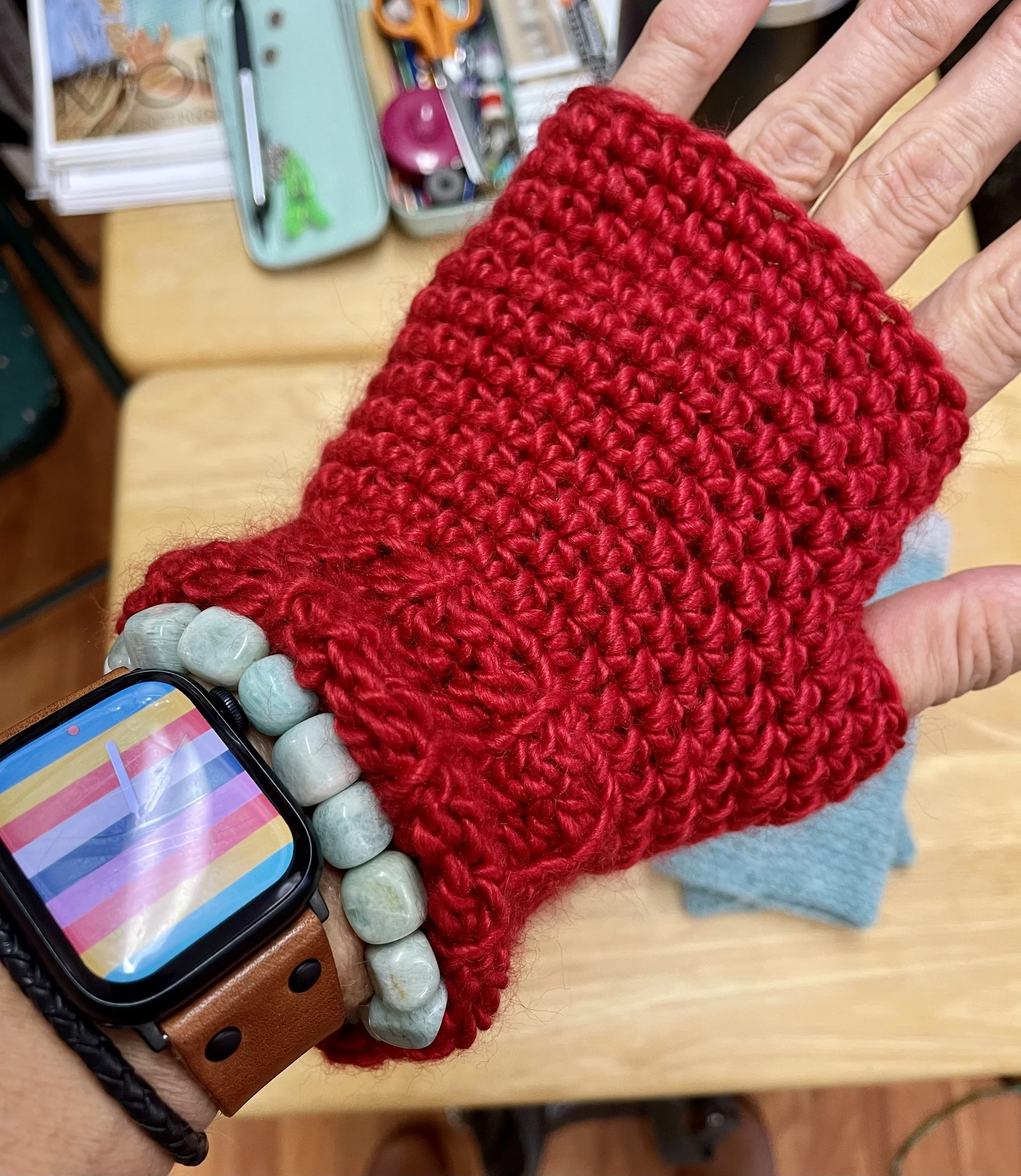 Our Week 3 projects are a cute and cozy hand warmers. We have crochet and knit versions. Get your free pattern with yarn purchase!
