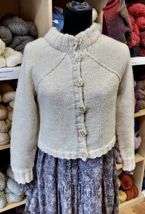 You get your choice of the Carbeth Cardigan or the 14 Color Woolstok Light Shawl.