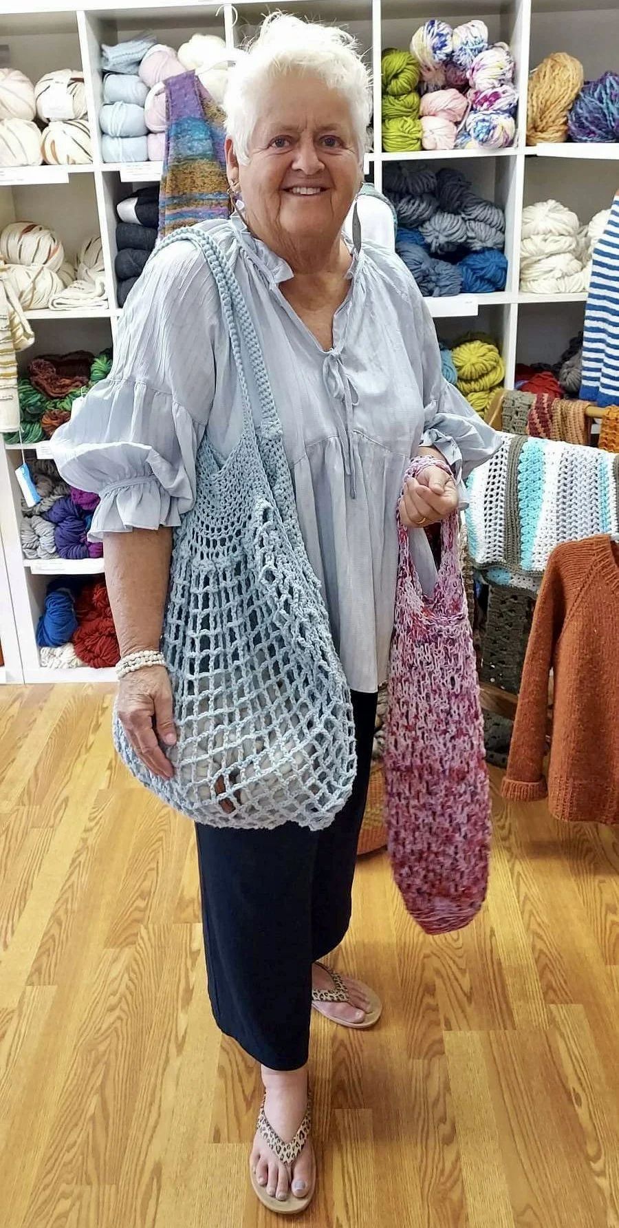 Henny chose Queensland Coastal Cotton in both solid and variegated versions for the shop samples. What’s your fave? We have so many summery colors to choose from!