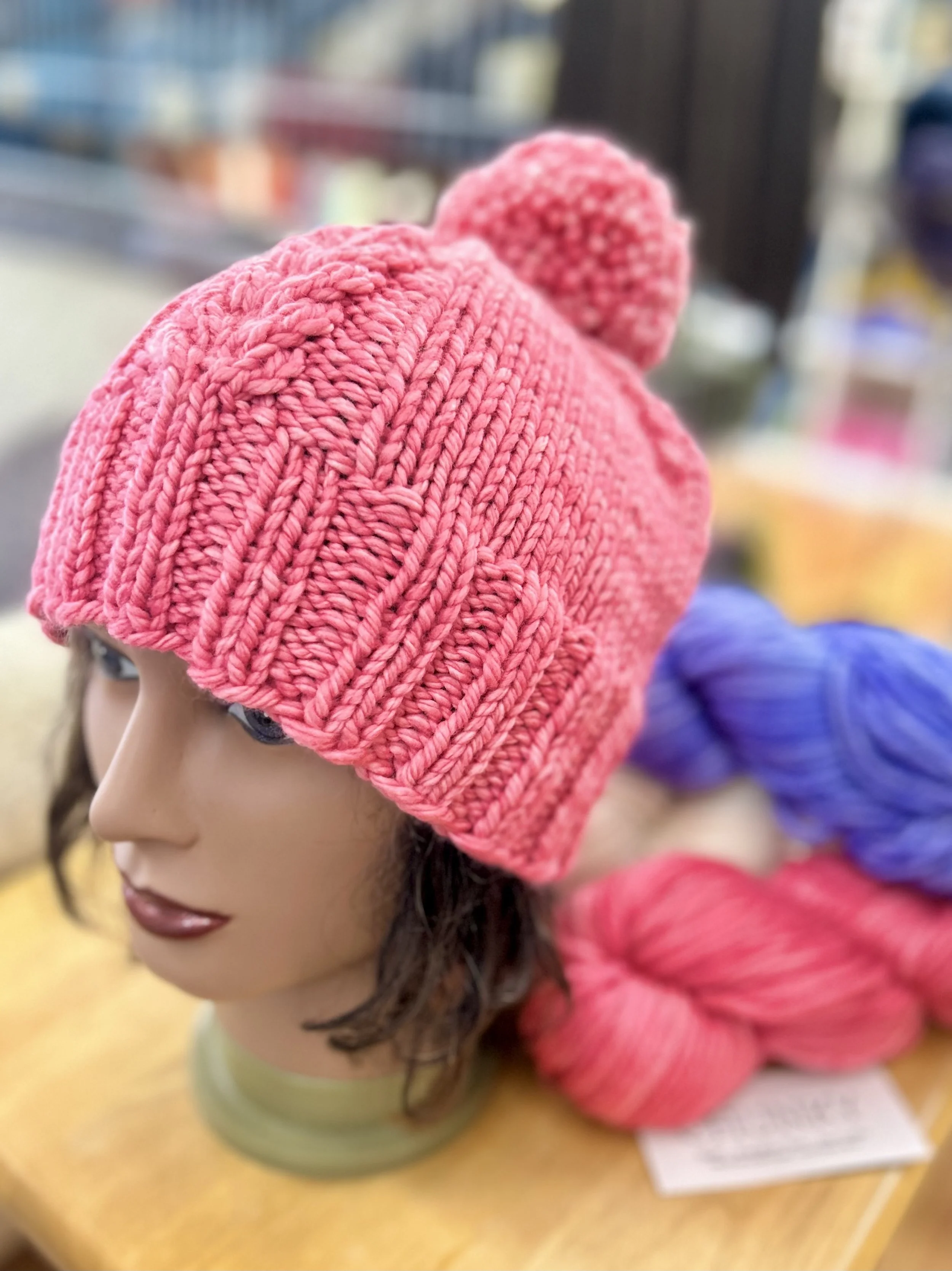 Henny decided to get a jump start on a sample for the shop. She’s using a fun new yarn at the shop - Color Marvel from Ella Rae. It’s a worsted weight yarn that looks very similar to a popular but pricey yarn that is used in many colorwork patterns. We think it pairs nicely with many of the solid worsteds we have in stock. Stop by soon to choose your favorite combo!