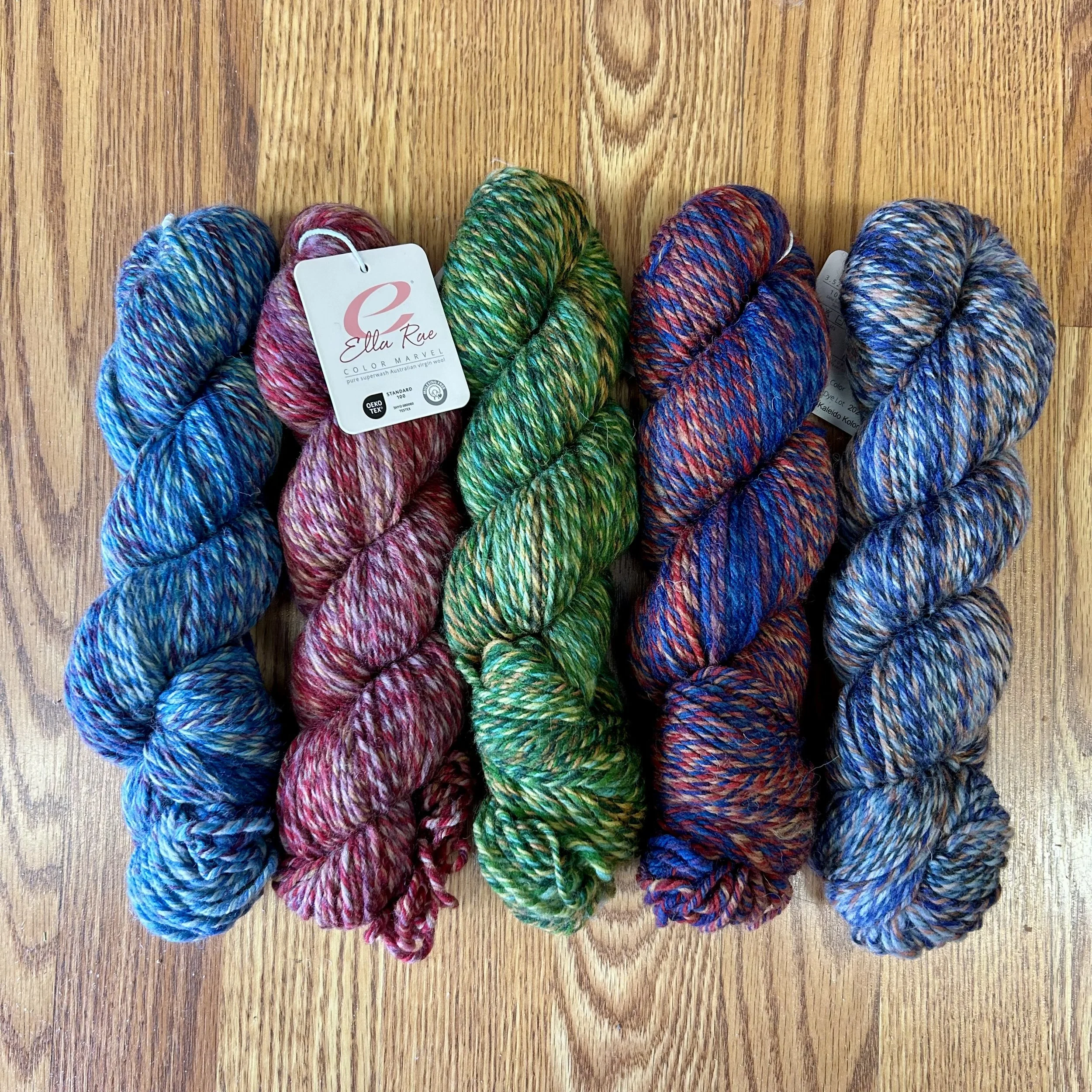 We used Color Marvel from Ella Rae. It’s 100% superwash Australian virgin wool and comes in some pretty fun colors!
