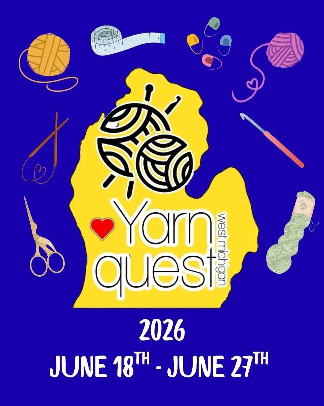 Mark your calendars for the 2026 West Michigan Yarn Quest! Passports will go on sale April 25th on LYS Day.