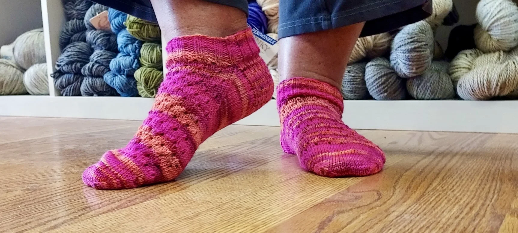 Henny chose a fun bright color from our collection of sock yarns from Supernova Dyeworks.