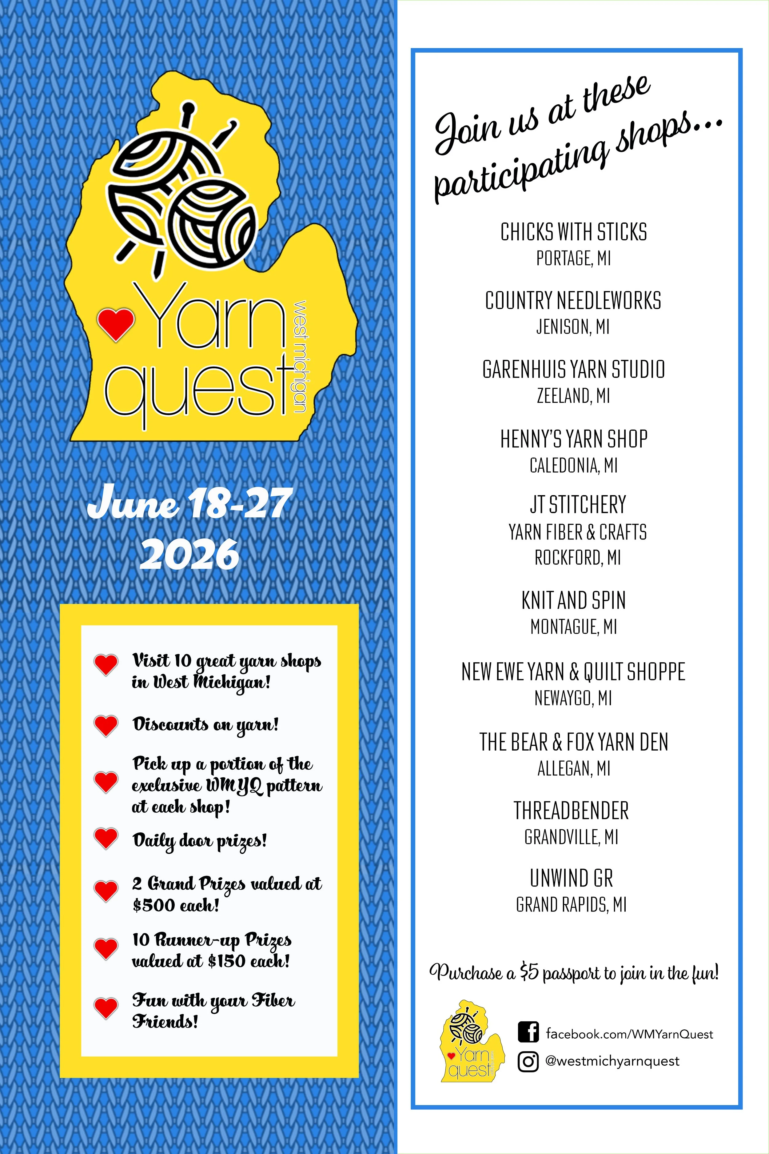 Passports for the 2026 West Michigan Yarn Quest are now on sale for $5.