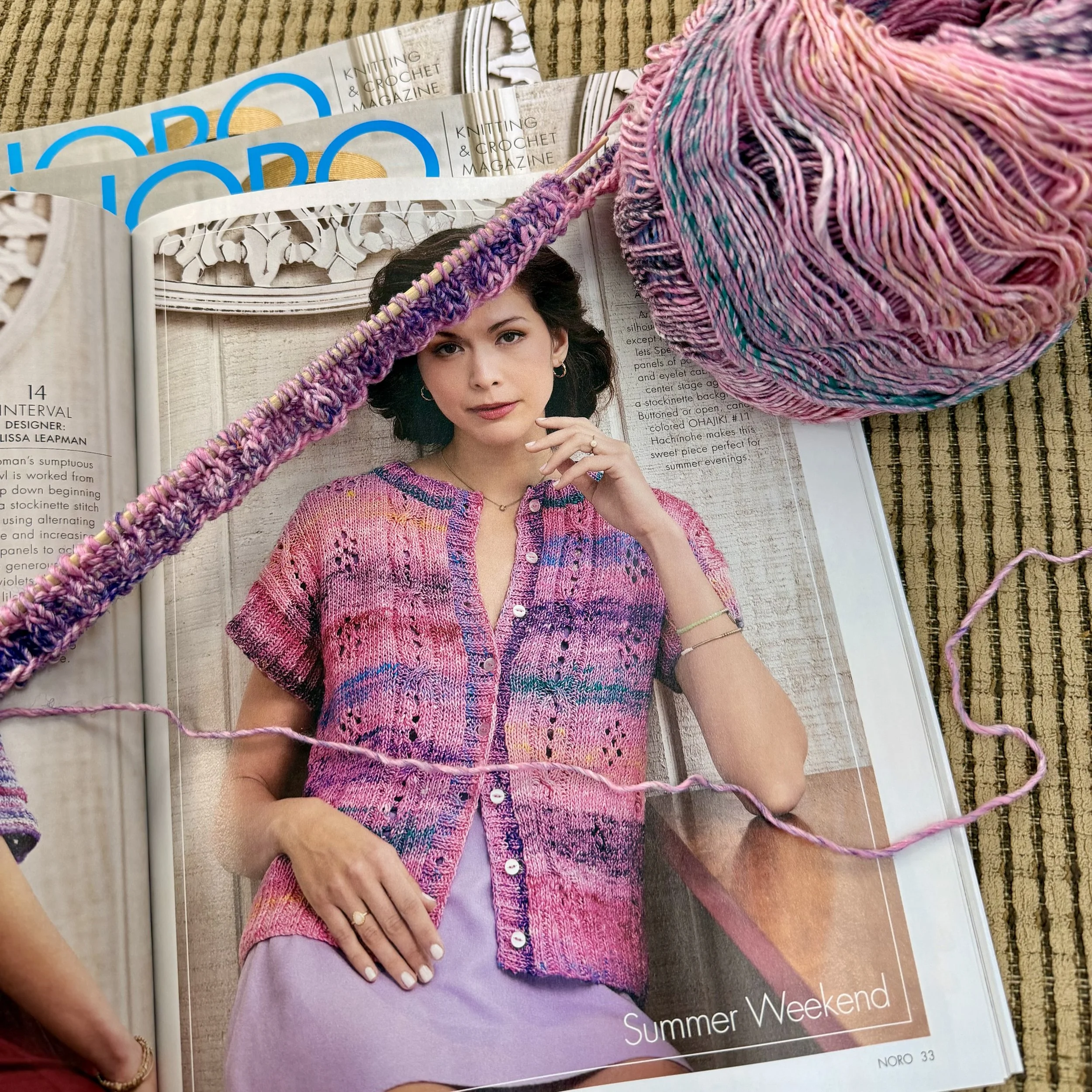 The NORO Magazine for spring has been a HUGE hit at the shop! As soon as we flipped through the colorful pages, yarn was chosen and sweaters were cast on…